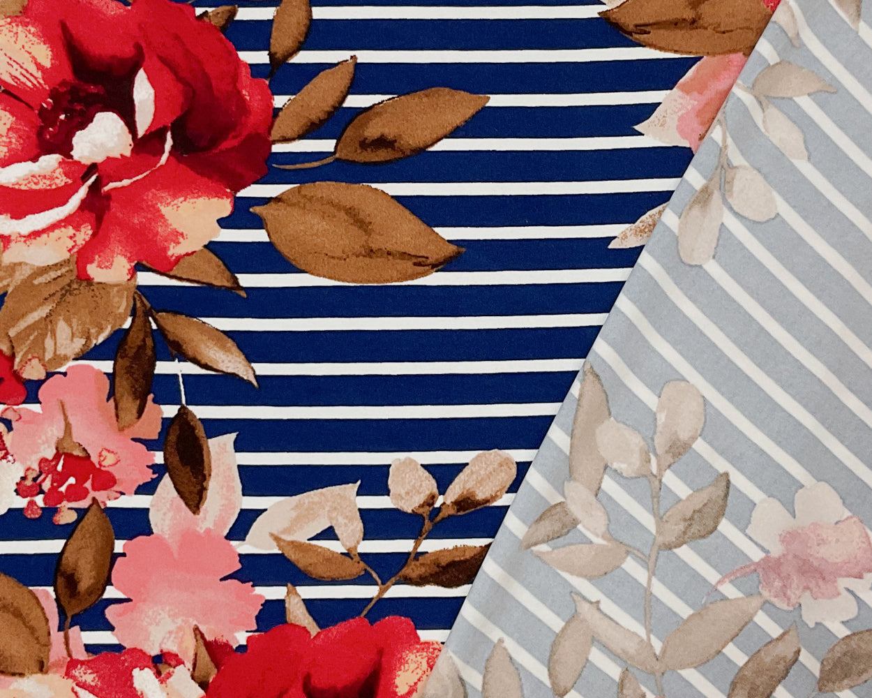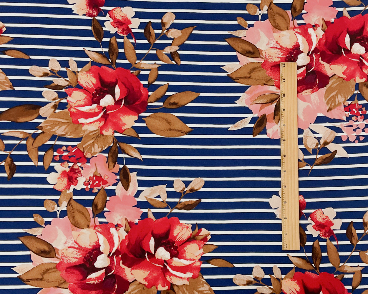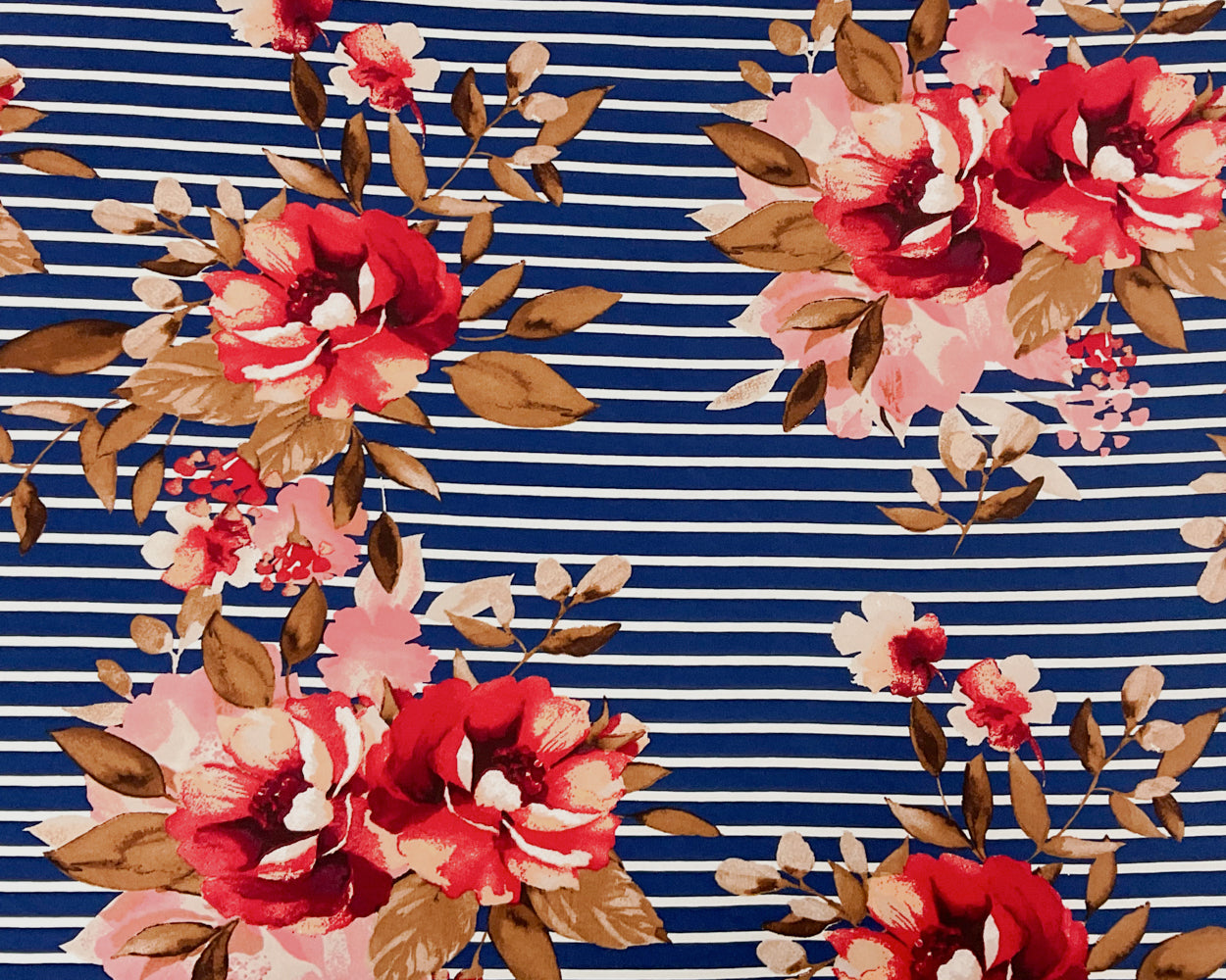 Blue-Multi Poly Stretch Spandex Floral Print DB Jersey Knit Fabric