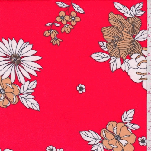 Bright Red Floral Double Brushed Jersey Knit Fabric