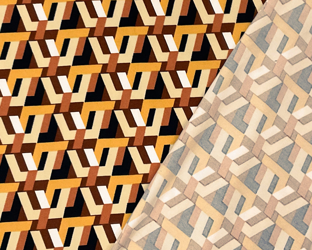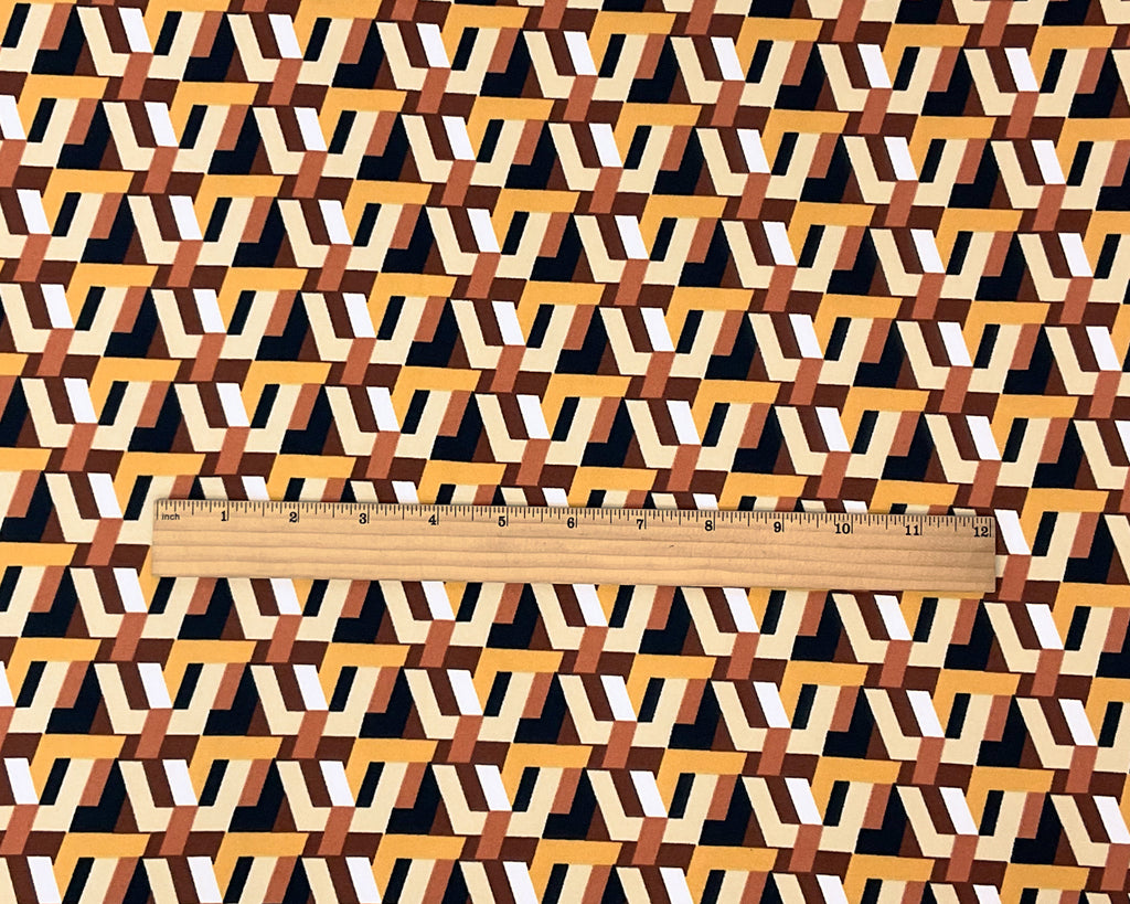 Brown-Multi Poly Spandex Stretch Geometric Printed Brush Jersey Knit Fabric