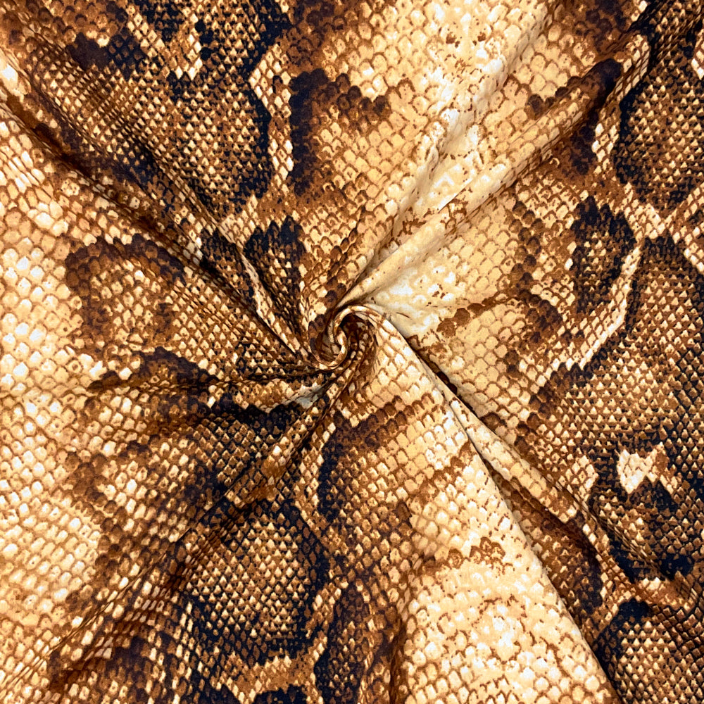 -Brown-Multi Poly Spandex Stretch Reptile Print Double Brush Jersey Knit Fabric