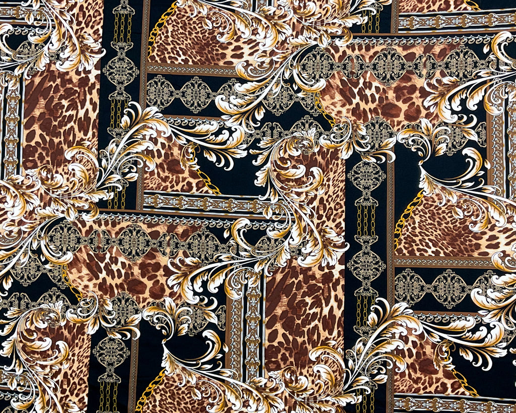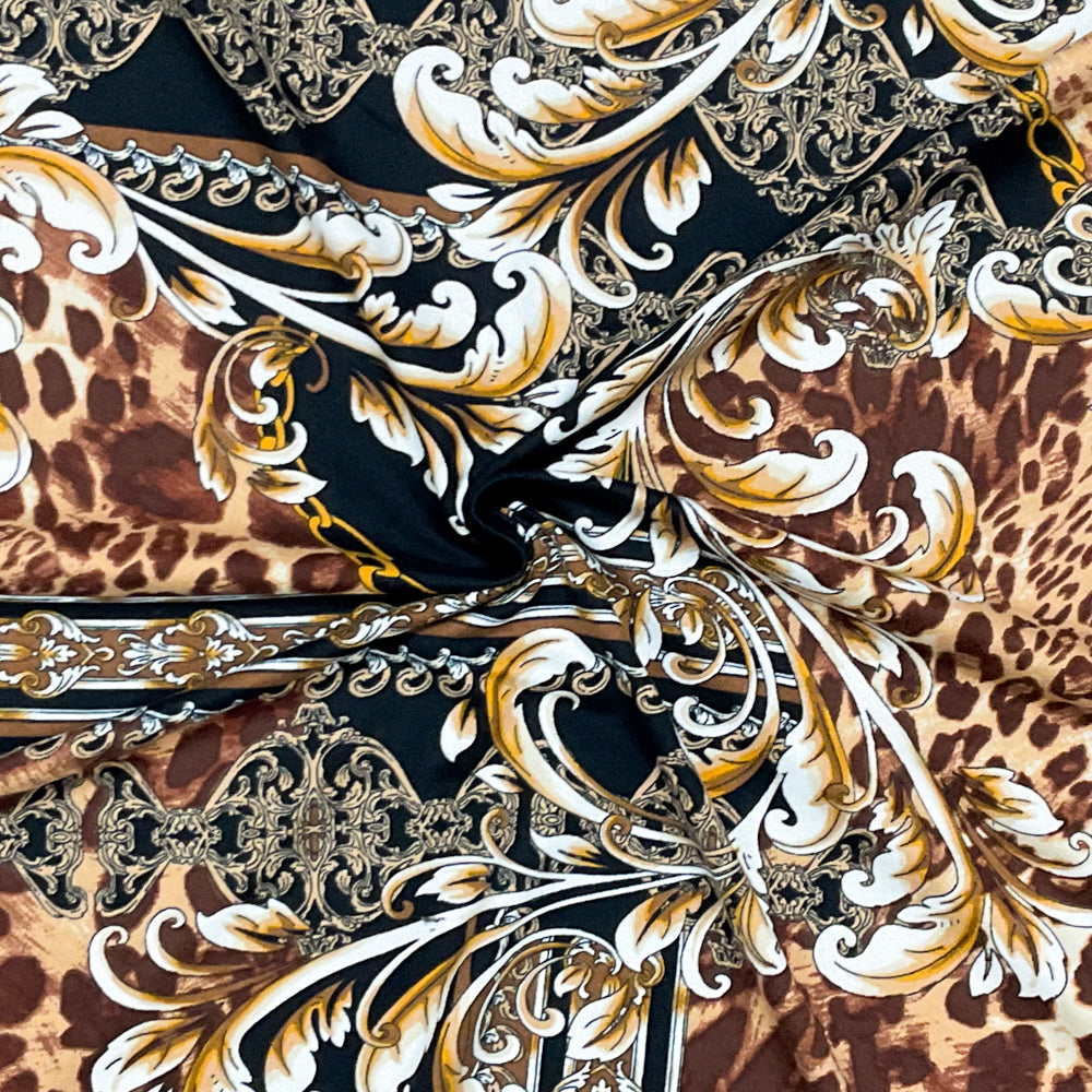 -Brown-Multi Poly Spandex Stretch Braque Print Double Brush Jersey Knit Fabric