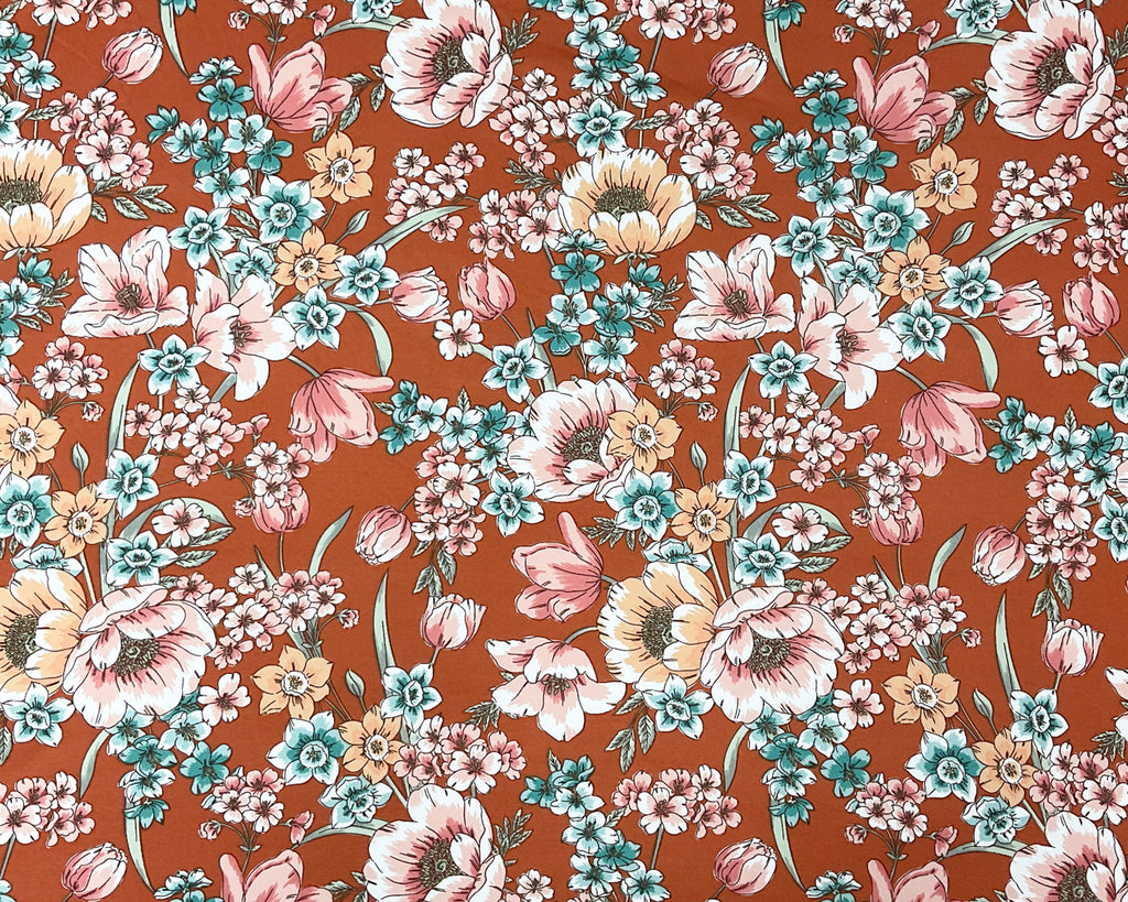 Brown-Multi Poly Stretch Spandex Floral Print DB Jersey Knit Fabric