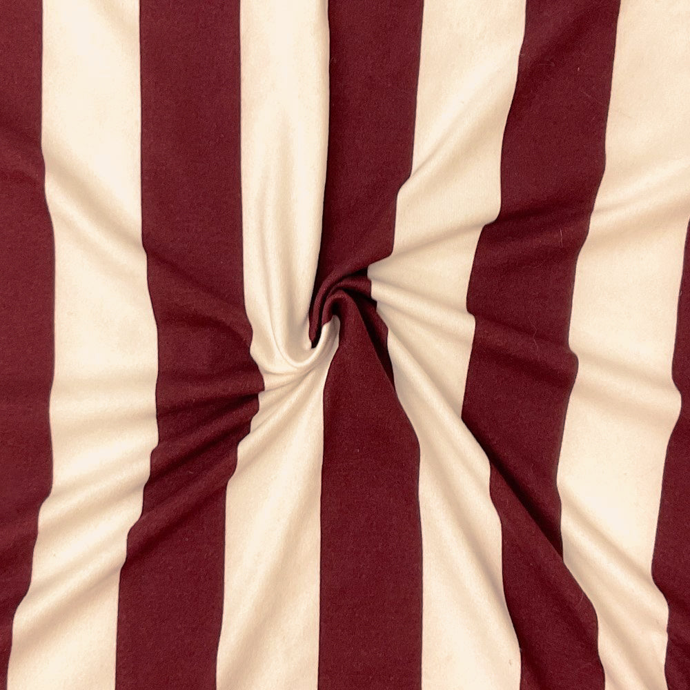 Brown-Off-White Poly Spandex Stretch Stripe Print DB Jersey Knit Fabric