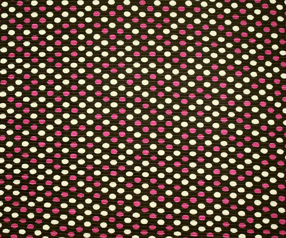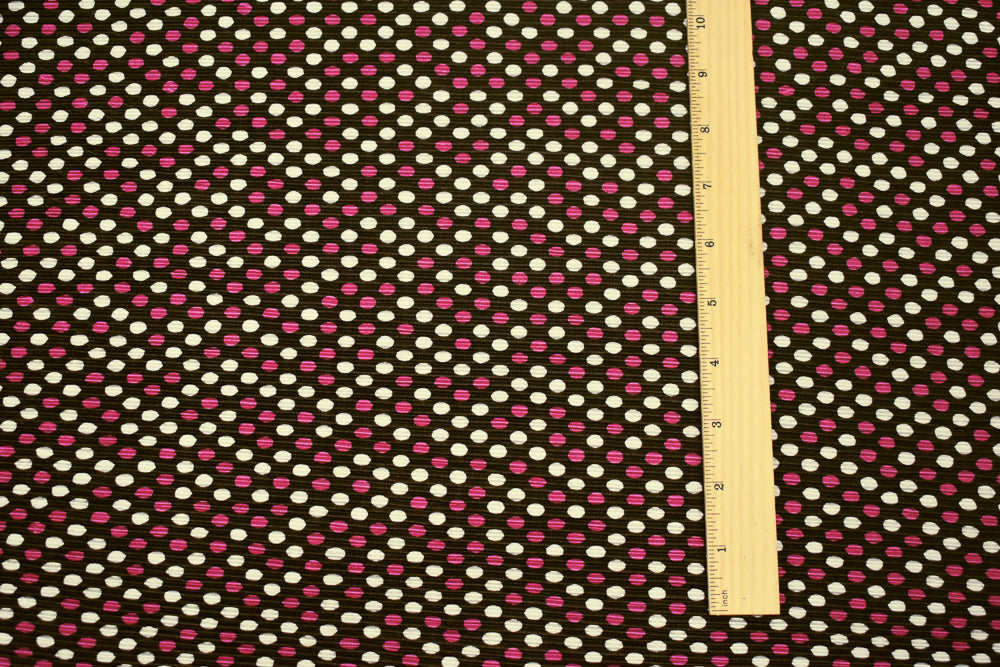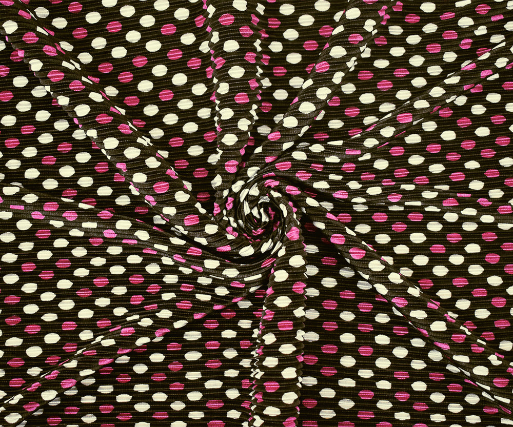 Brown-Pink-White Dot Printed Stretch Poly Pressed Pleated Satin Knit Fabric