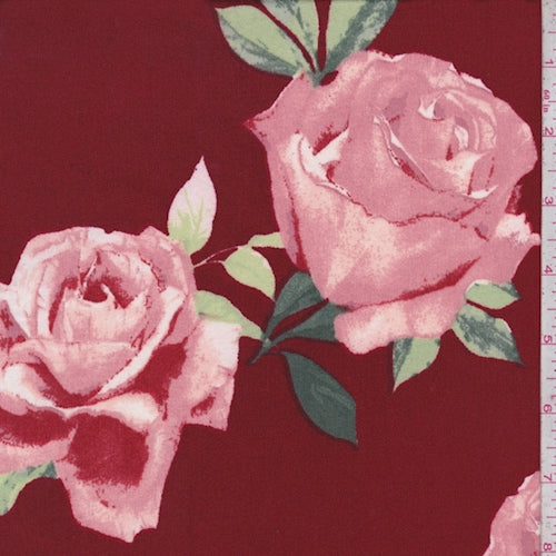 Crimson/Pink Rose Double Brushed Jersey Knit Fabric