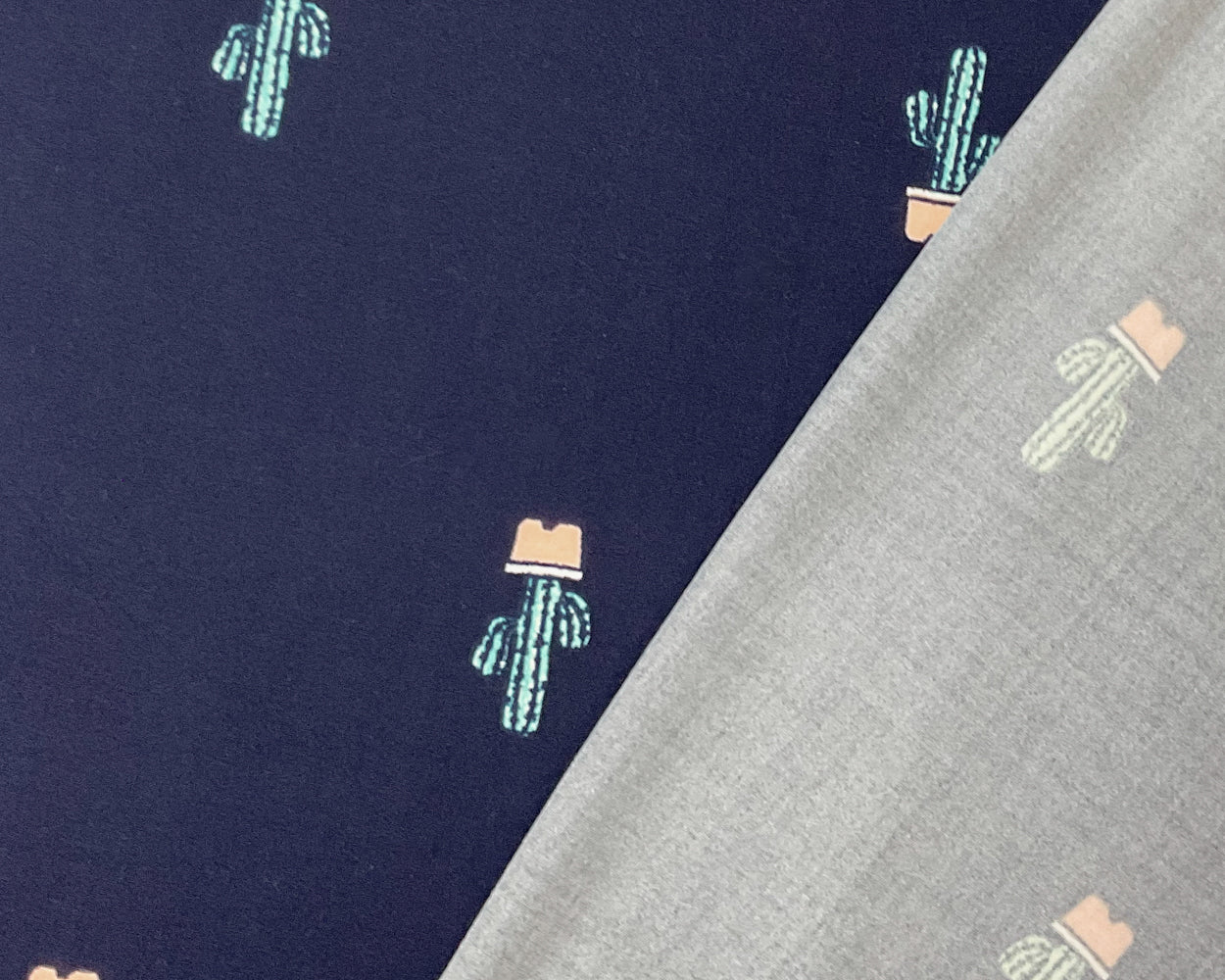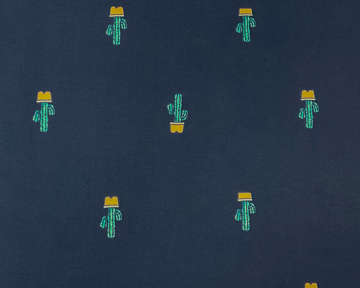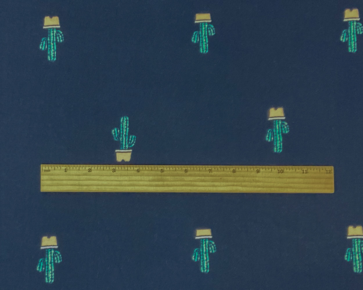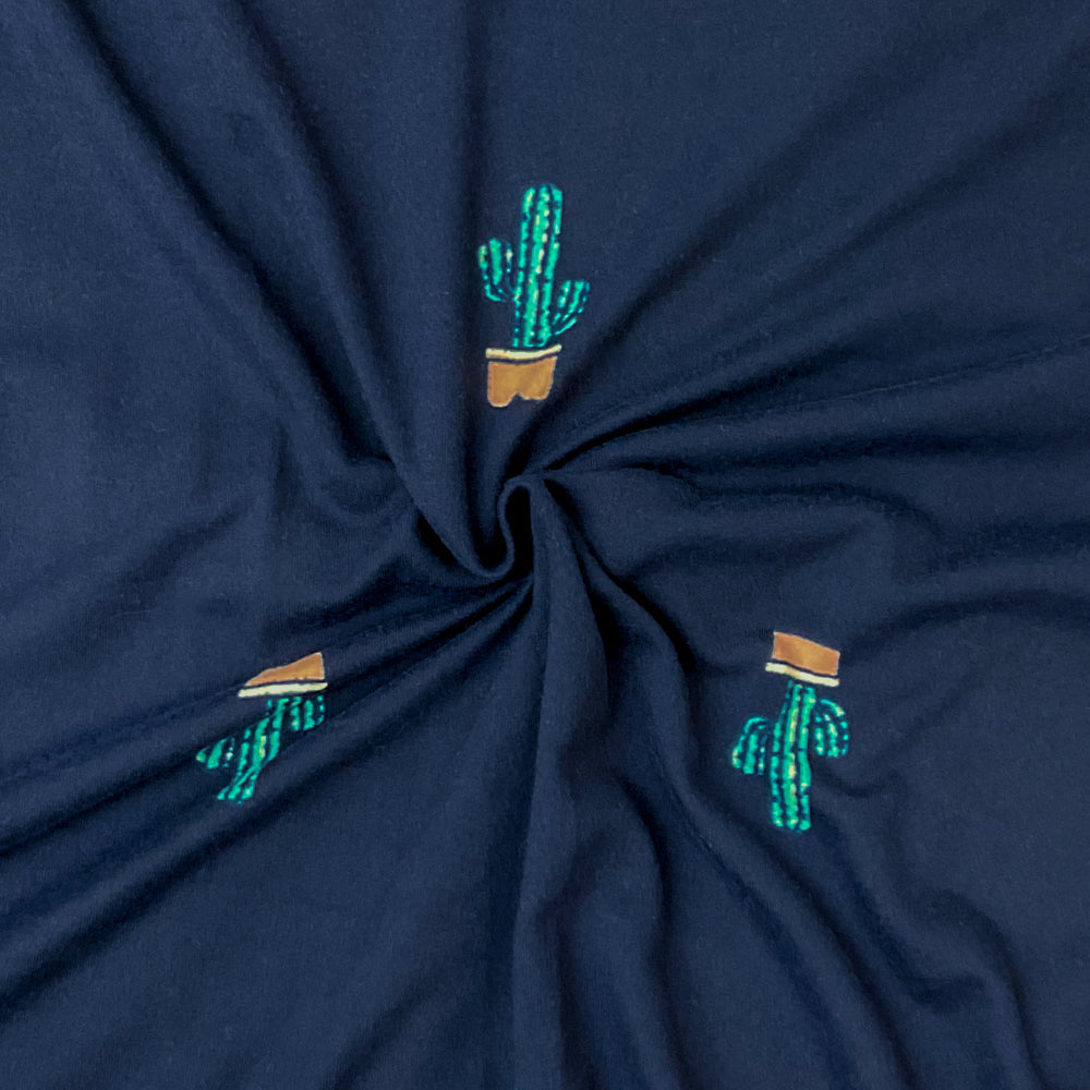 Deep Navy-Multi Poly Spandex Stretch Cactus Print DB Jersey Knit Fabric