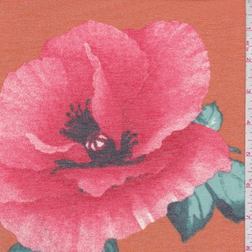 Deep Orange/Coral Peony Brushed French Terry Knit Fabric