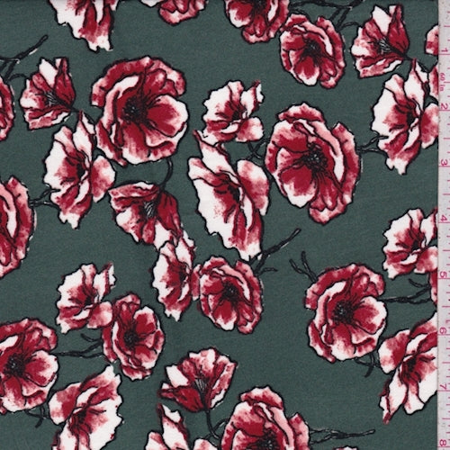 Forest/Garnet Floral Double Brushed Jersey Knit Fabric