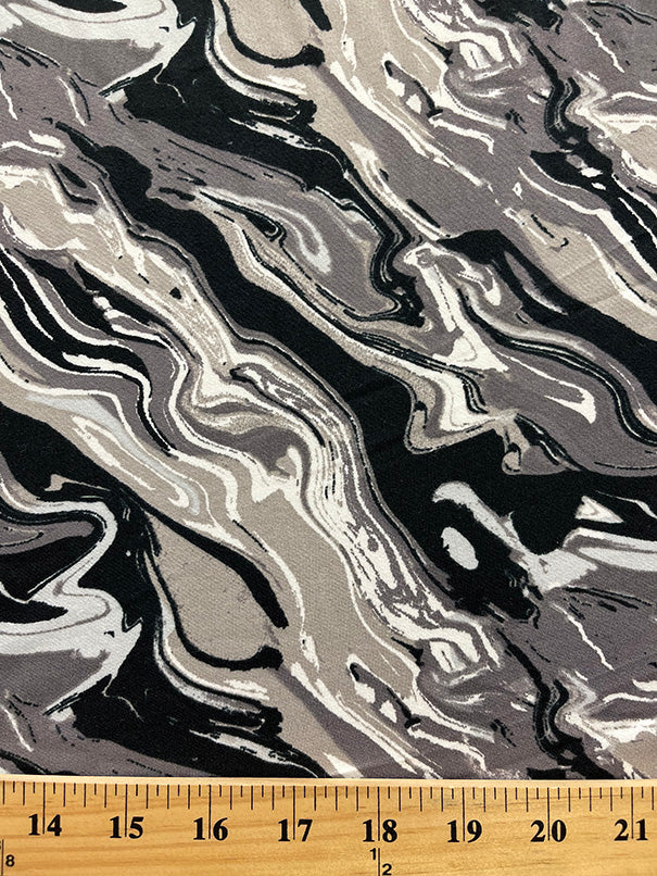-Shades of Gray, White, & Black Marbled Print Double Brushed Jersey Knit Fabric