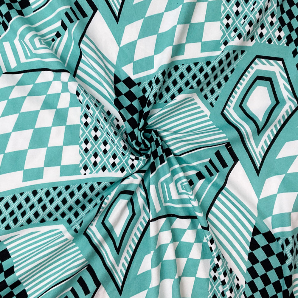 Green-Multi Poly Spandex Stretch Geometry Print DB Jersey Knit Fabric