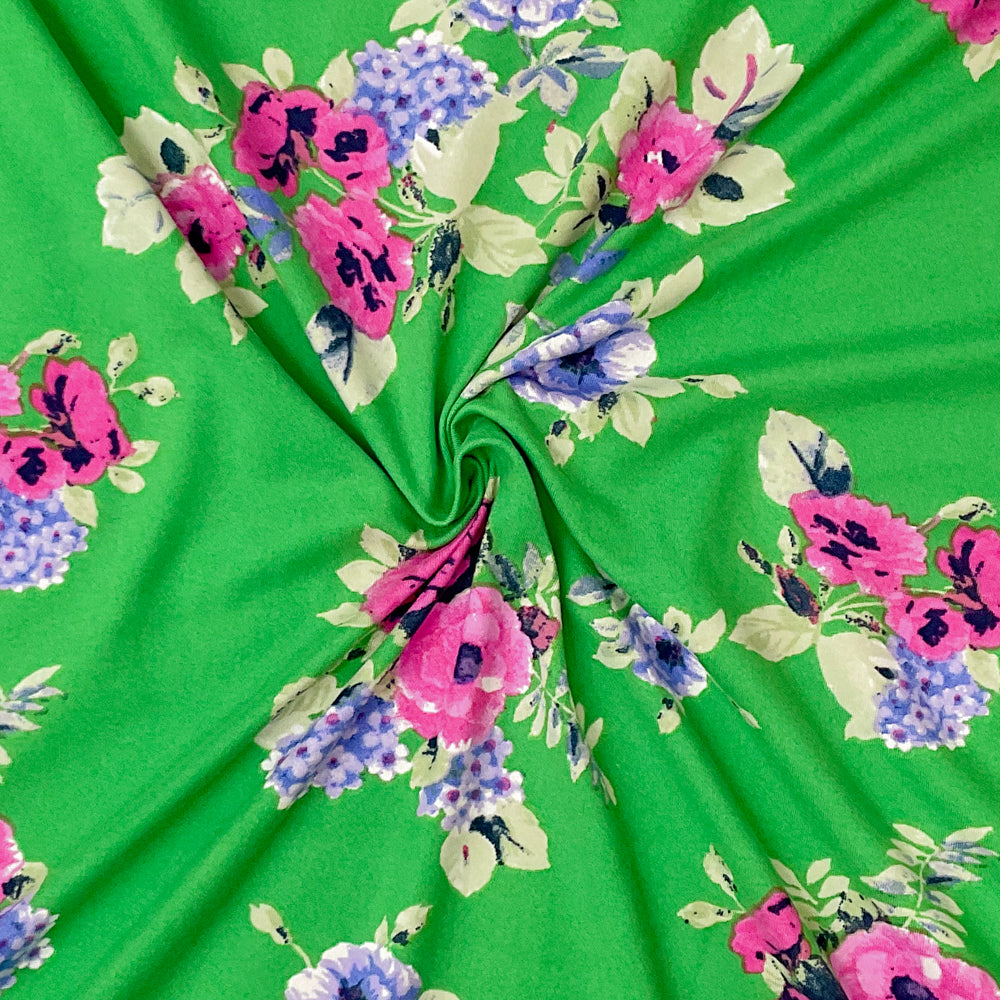 Green-Multi Poly Stretch Spandex Floral Print DB Jersey Knit Fabric