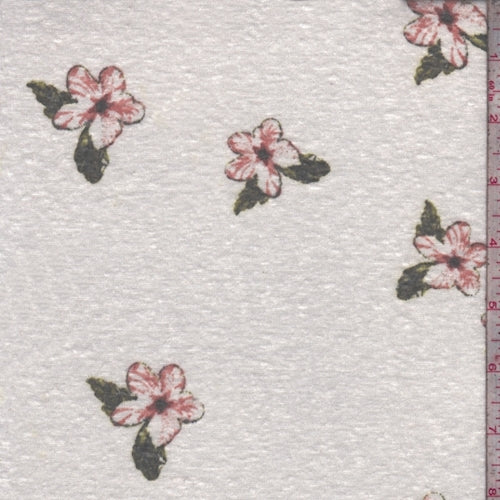 Light Cream Dogwood Floral Slub Jersey Knit Fabric