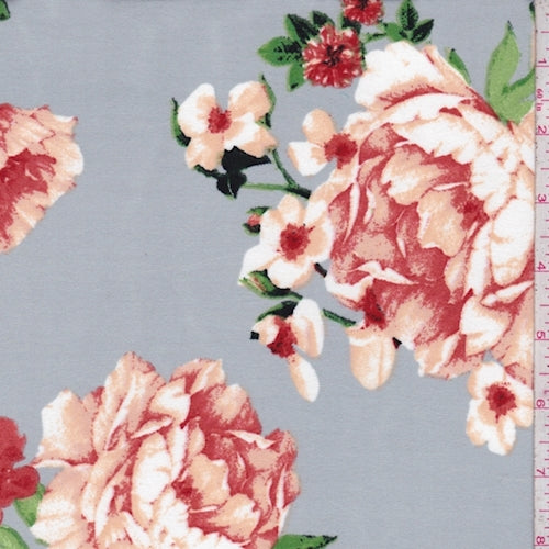 Misty Grey/Apricot Dogwood Double Brushed Jersey Knit Fabric