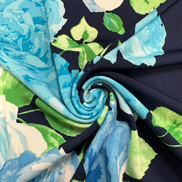 Navy Blue Floral Print ITY Jersey Knit Fabric
