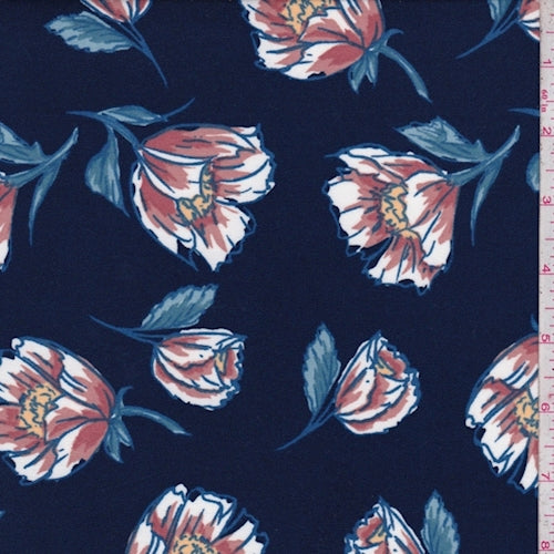 Navy/Copper Fringe Floral Double Brushed Jersey Knit Fabric