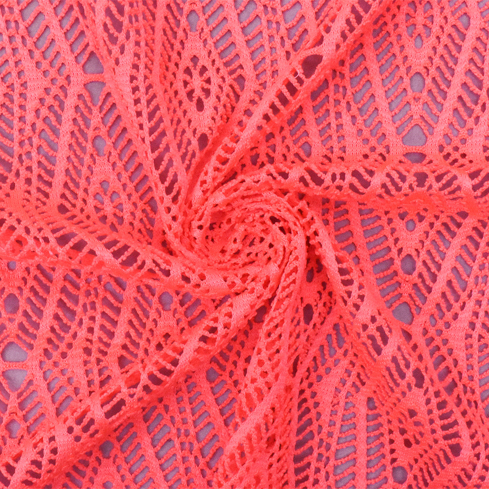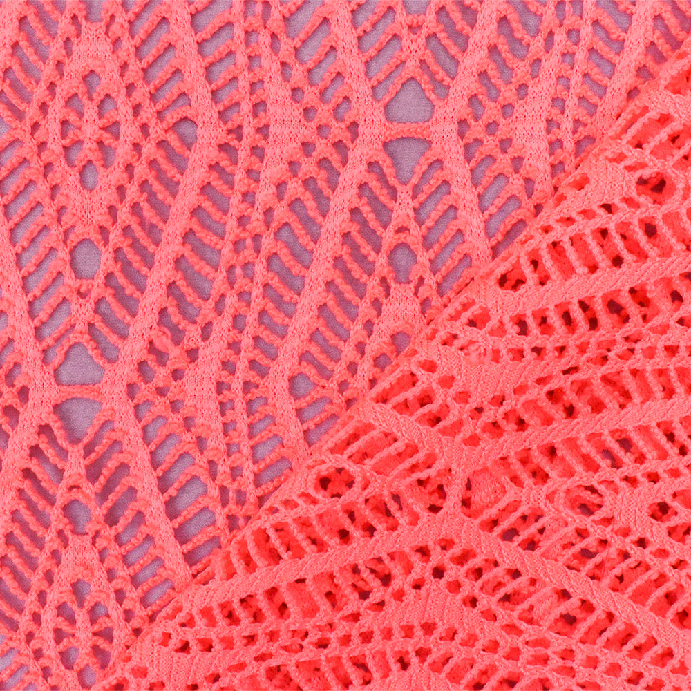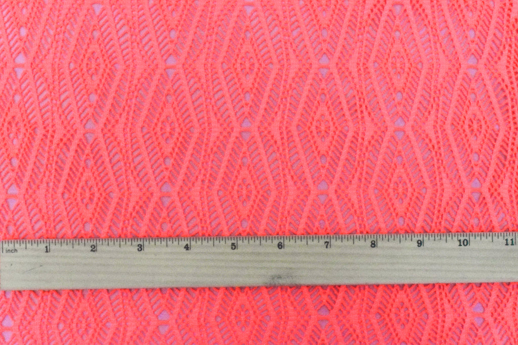 Neon Orange Patterned Diamond Stretch Poly Crochet Knit Fabric
