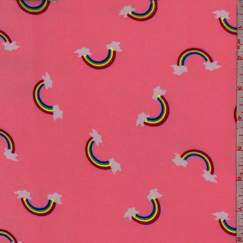 Neon Pink Rainbow Double Brushed Jersey Knit Fabric