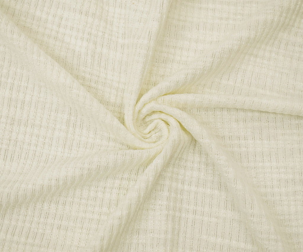 Off-White Poly Stretch Spandex Texture Slub Rib Knit Fabric
