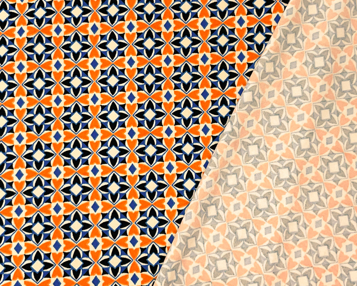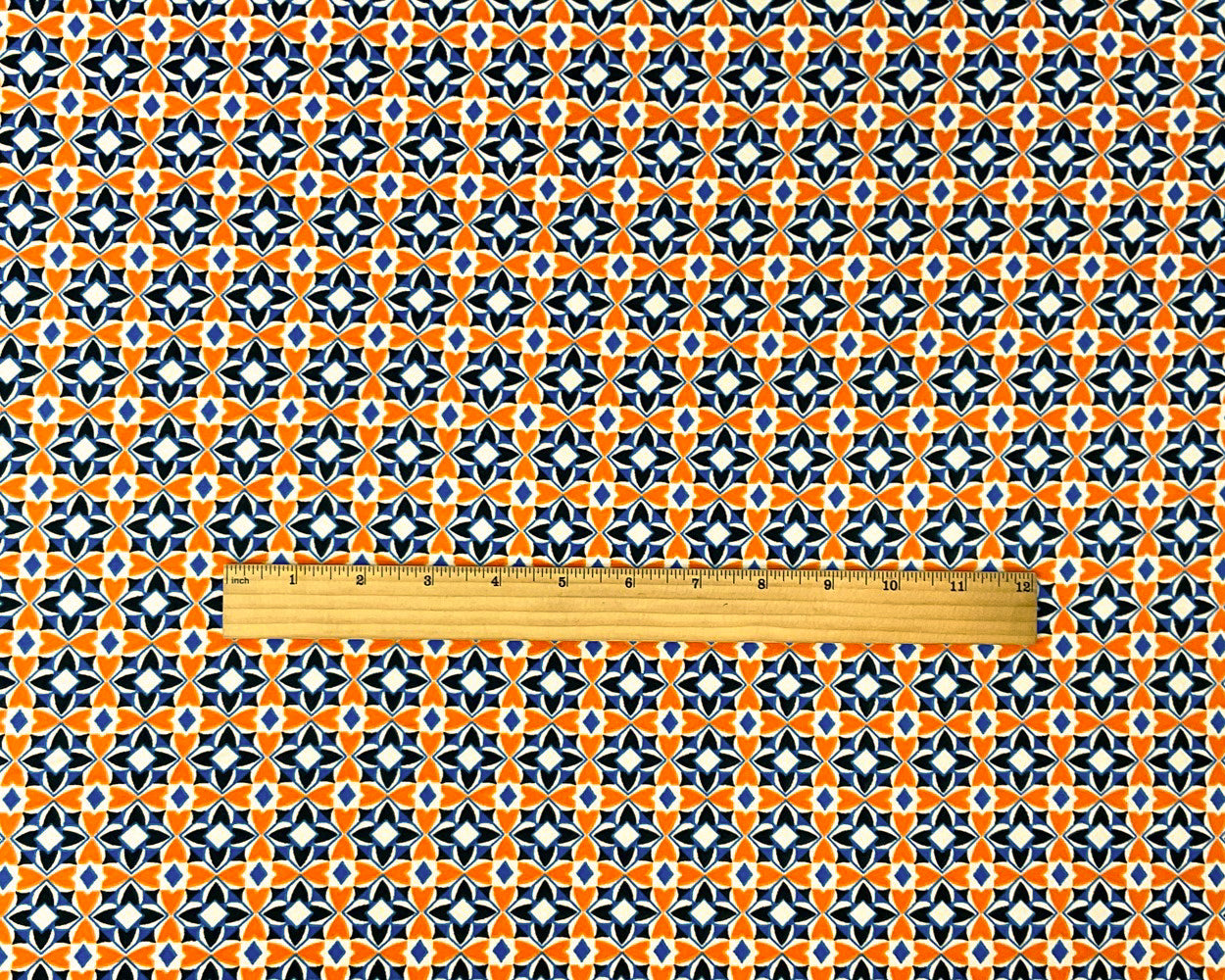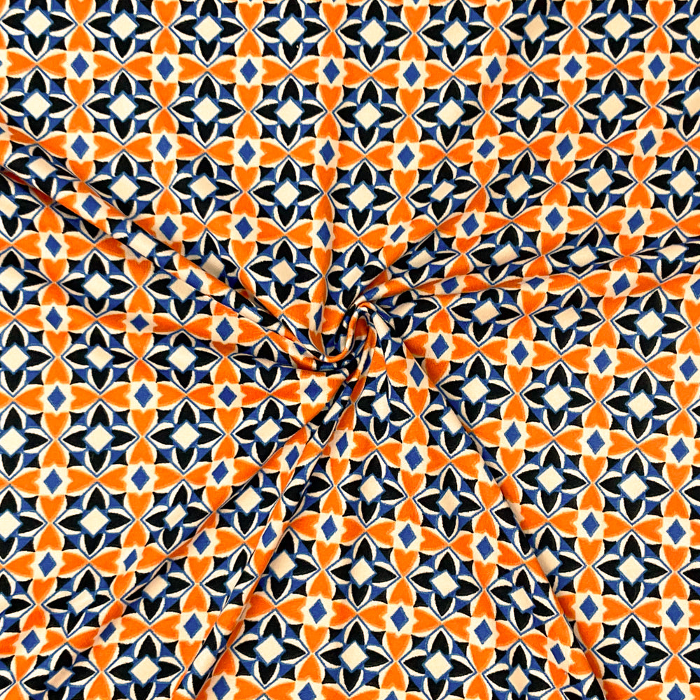 Orange-Multi Poly Spandex Stretch Flower Tile Print DB Jersey Knit Fabric