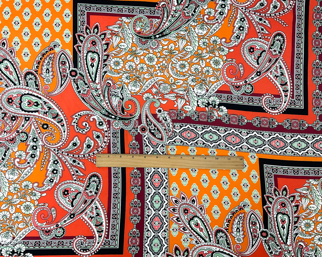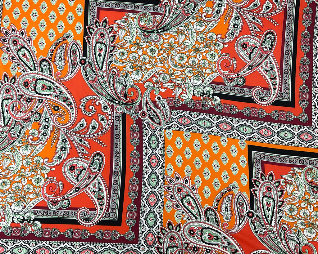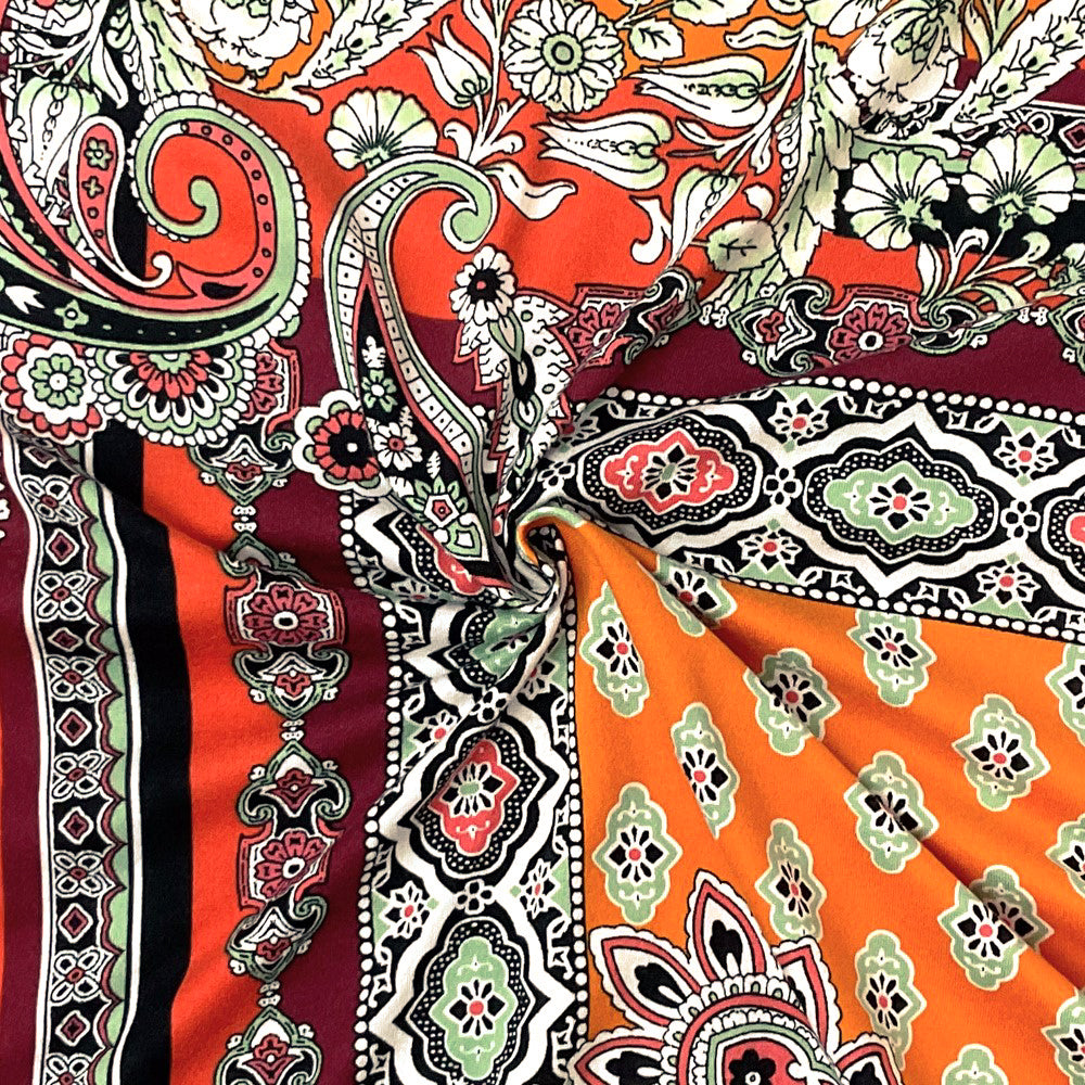 Orange-Multi Poly Spandex Stretch Paisley Print Double Brush Jersey Knit Fabric