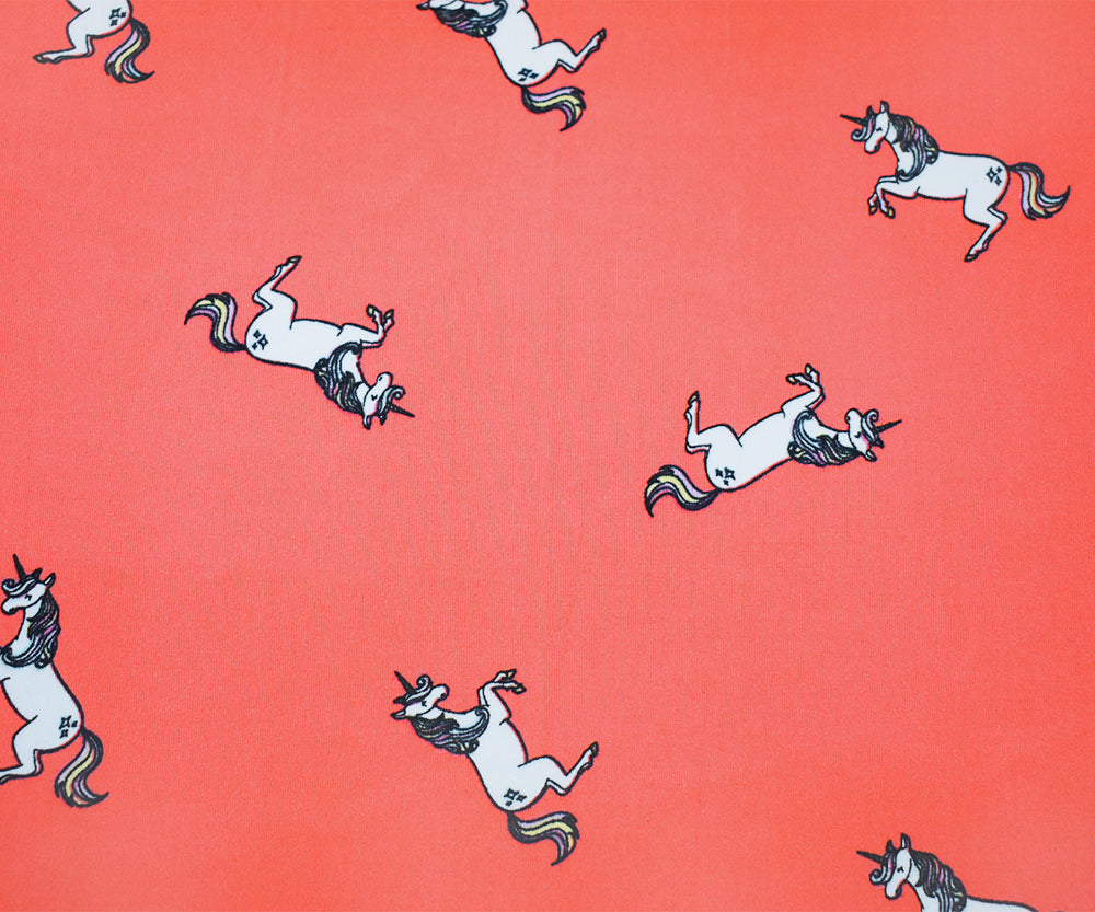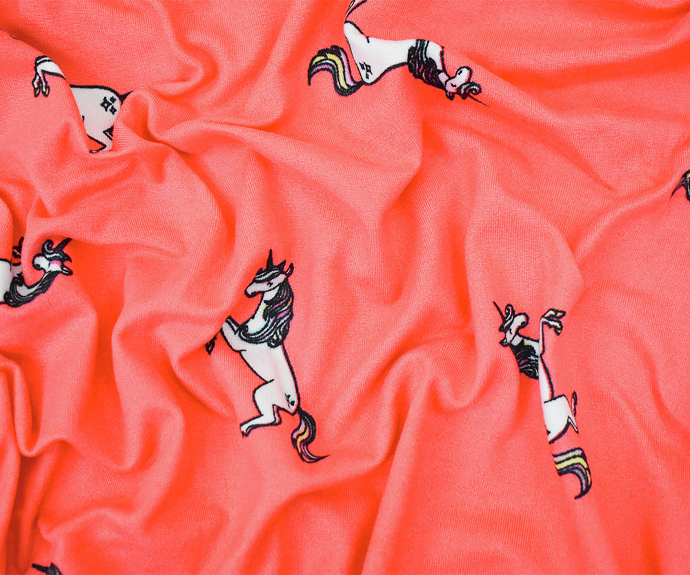 Orange-Multi Unicorn Printed Poly Spandex Super Double Brush ITY Fabric