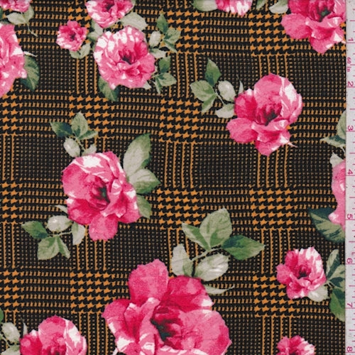 Orange/Pink Glen Plaid Floral Double Brushed Jersey Knit Fabric