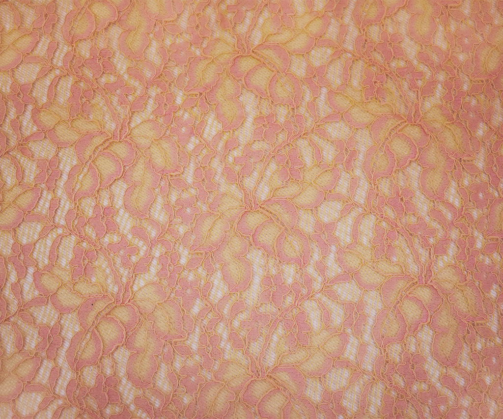 Orange-Pink Poly Cotton Blend Floral Lace Knit Fabric