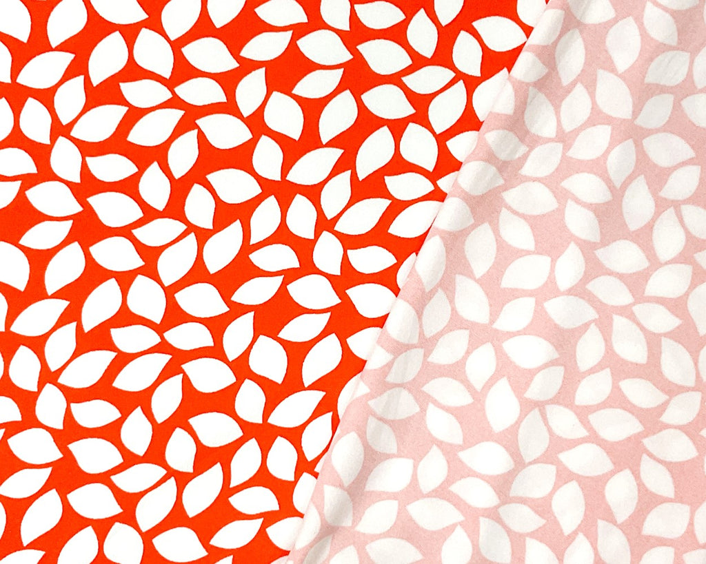 Orange-White Poly Stretch Spandex Petal Print DB Jersey Knit Fabric