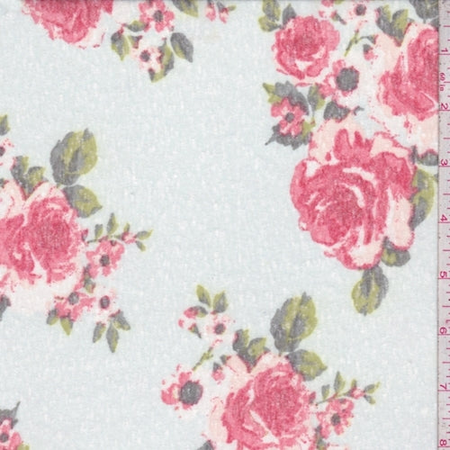 Pale Green/Brick Floral Slub Jersey Knit Fabric
