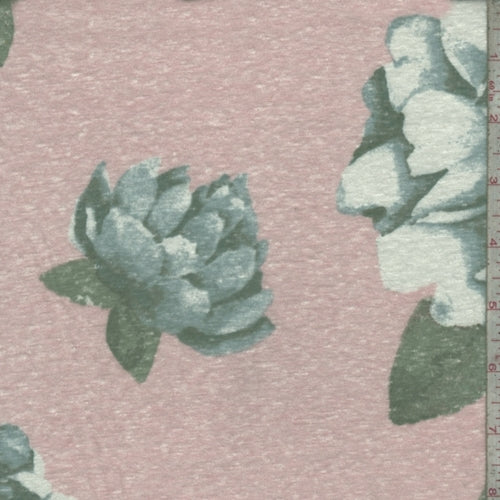 Pink/Dusty Blue Floral Bloom Slub Jersey Knit Fabric