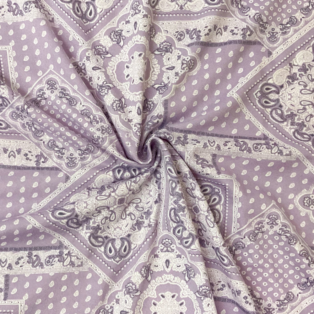 Purple-Ivory Poly Stretch Spandex Paisley Print DB Jersey Knit Fabric