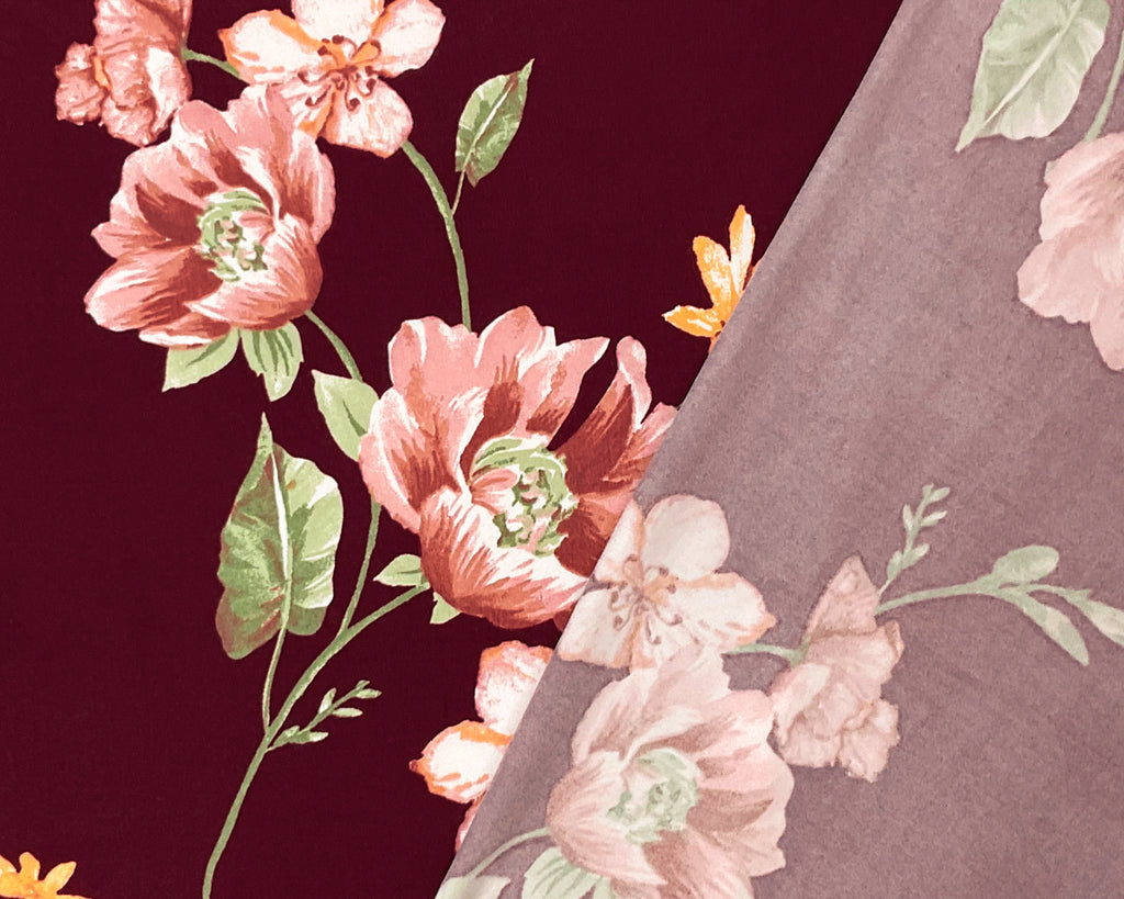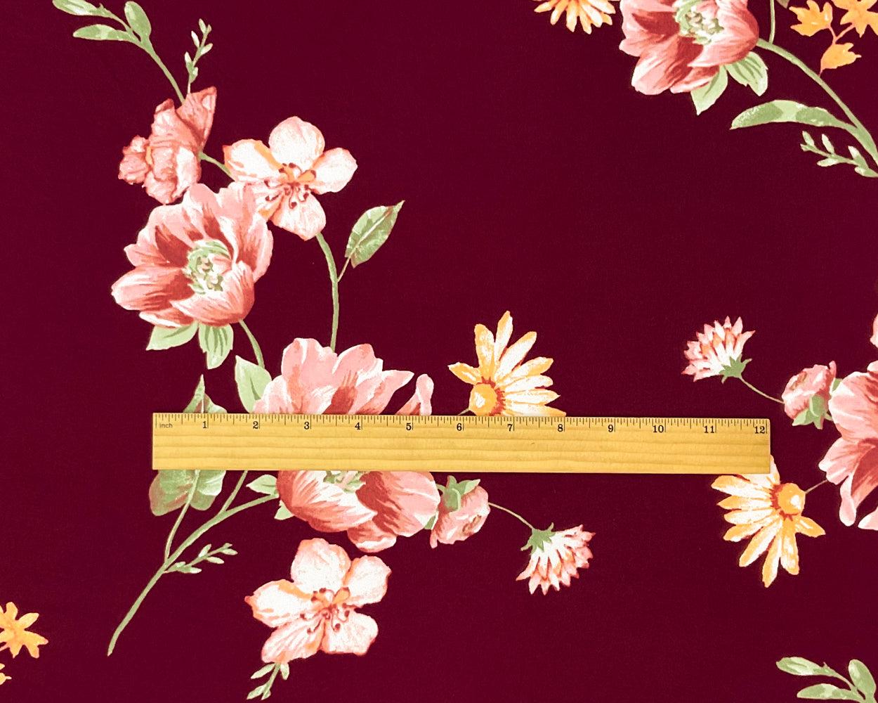 Red-Multi Poly Spandex Stretch Floral Print DB Jersey Knit Fabric