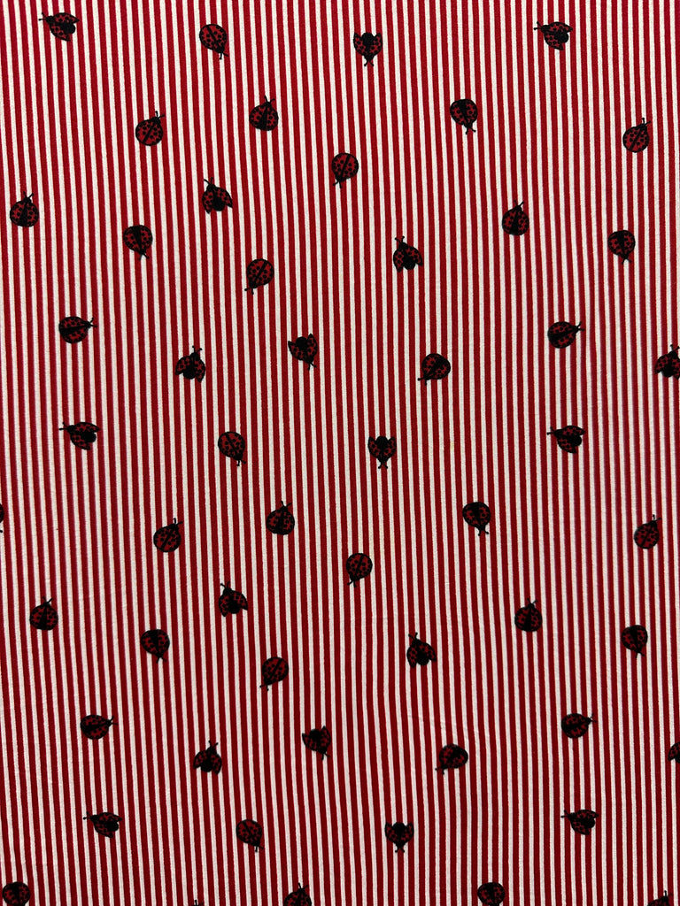 Red Stripe Ladybug Print Double Brushed Jersey Knit Fabric