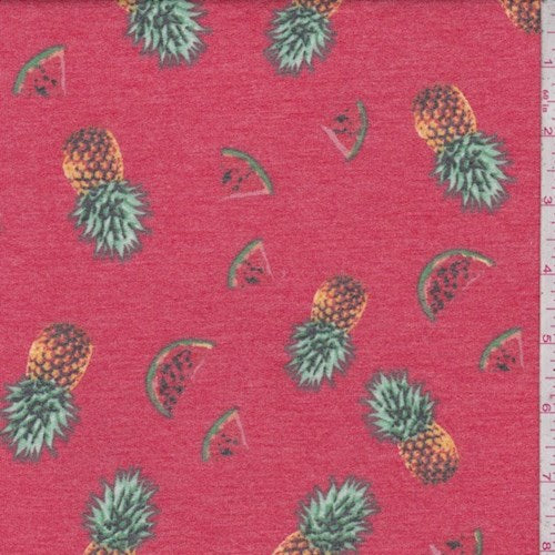 Red Tossed Fruit Brushed French Terry Knit Fabric