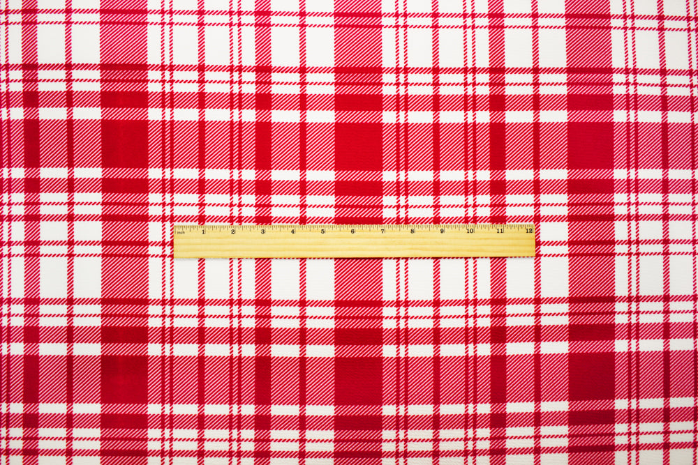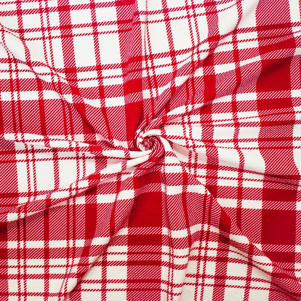 Red-White Poly Plaid Printed Stretch Spandex Liverpool Double Knit Fabric