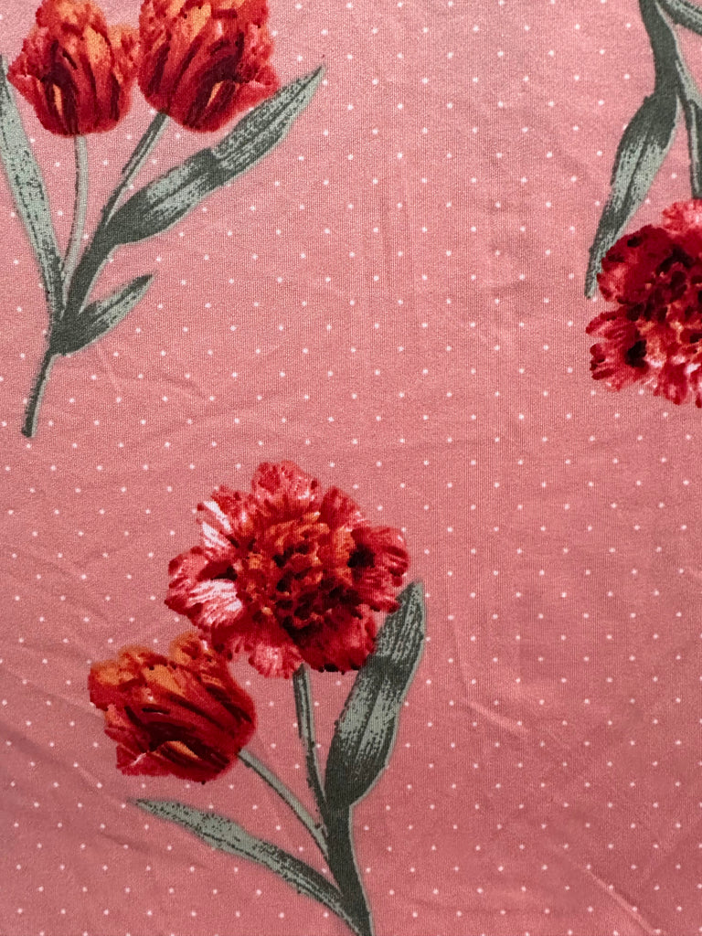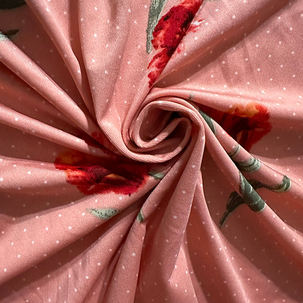 Salmon Pink Polka Dot Floral Print ITY Jersey Knit Fabric
