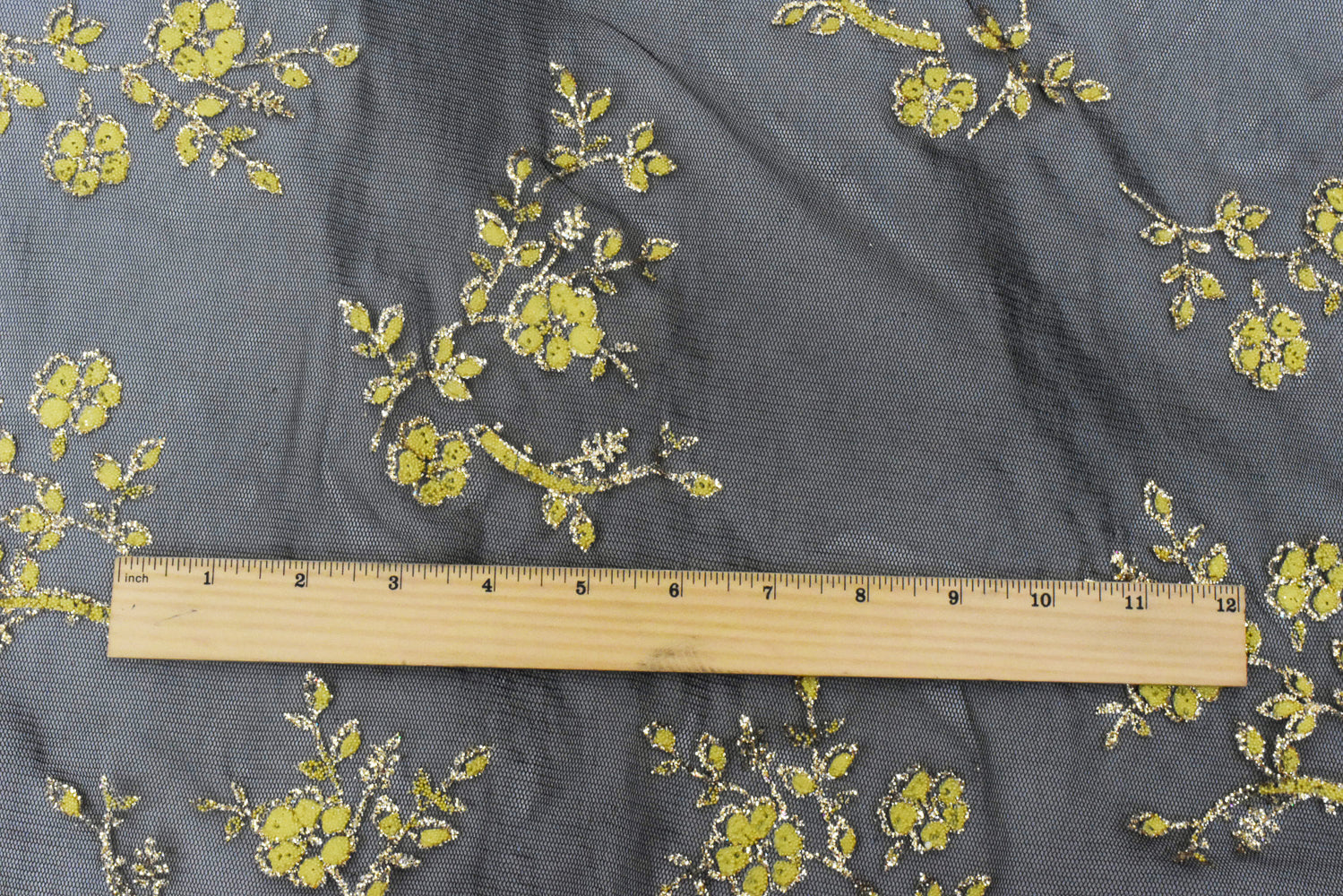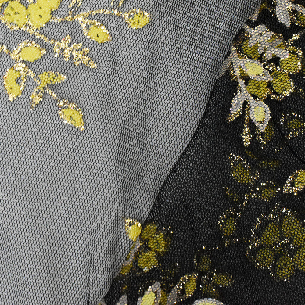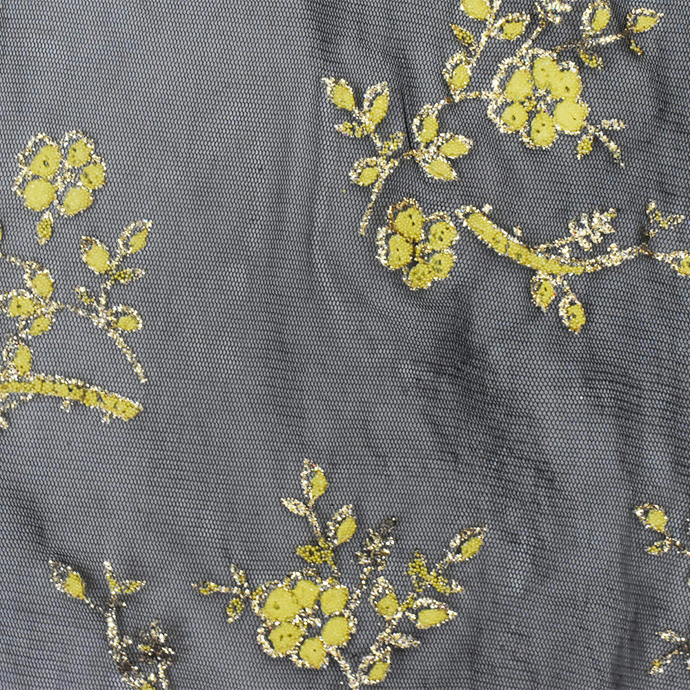 Star Gold-Black-Yellow Flora Sparkles and Bead Poly Mesh Knit Fabric