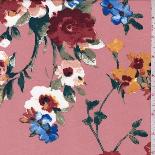 Terra Cotta/Royal Multi Floral Double Brushed Jersey Knit Fabric