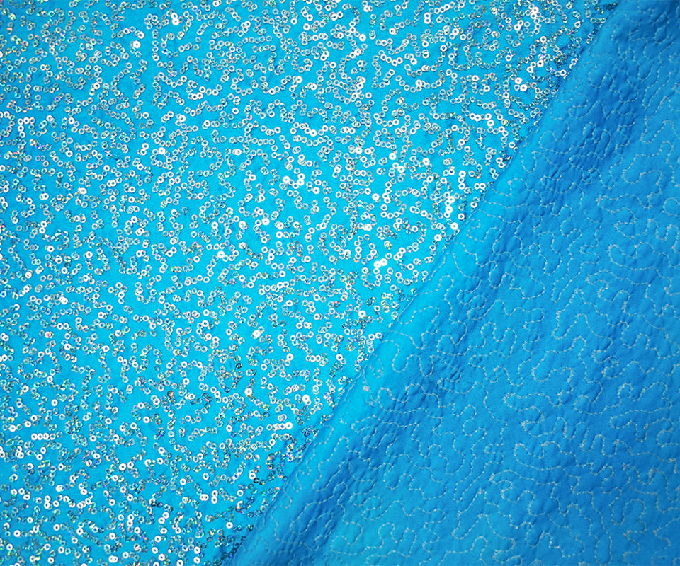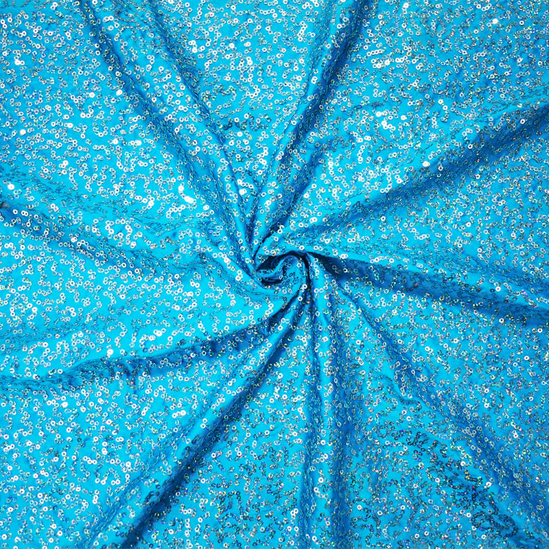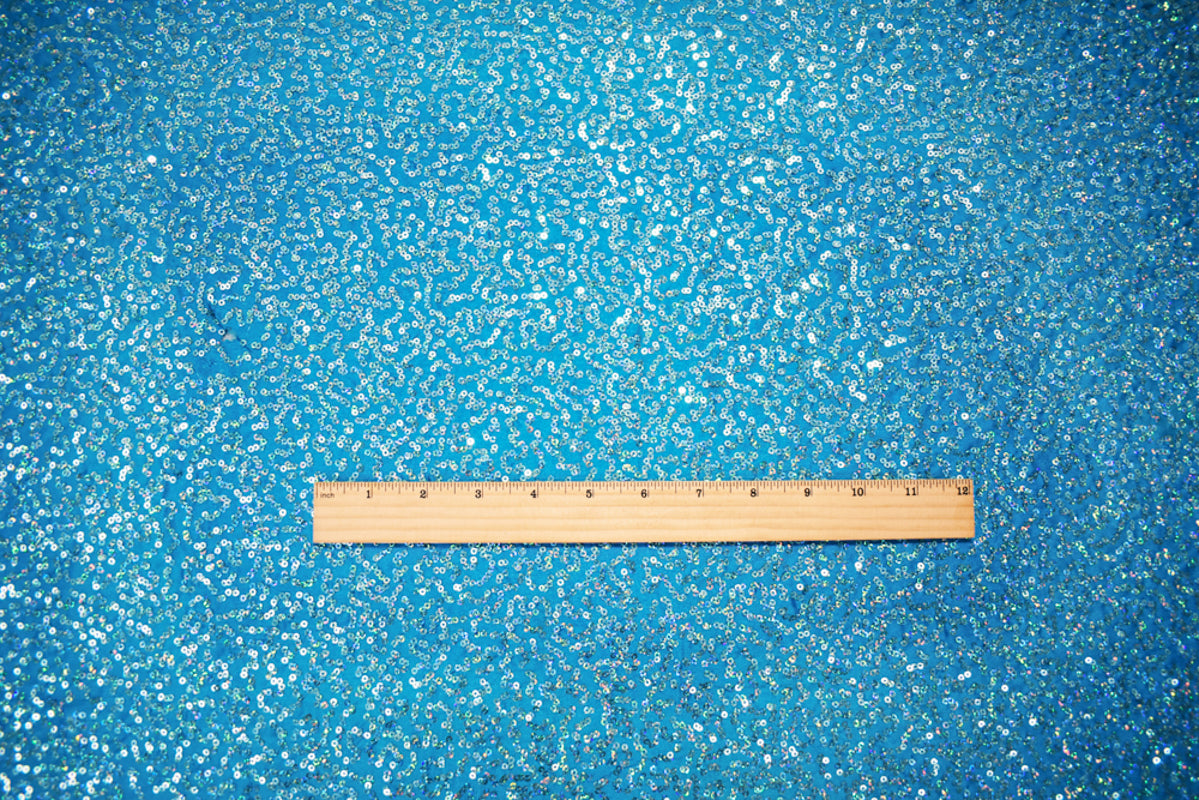 Turquoise-Blue Coral Sequin Pattern Stretch Spandex Knit Fabric