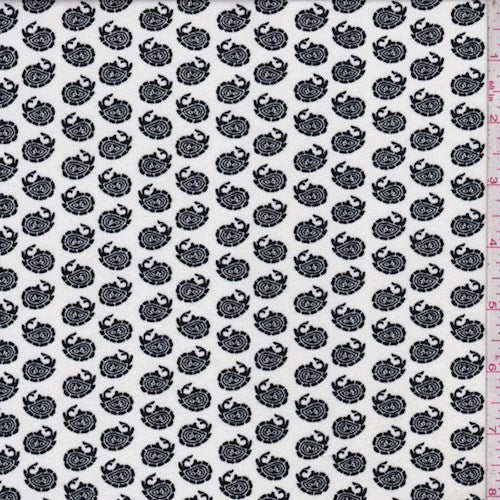 White/Black Mini Paisley Double Brushed Jersey Knit Fabric