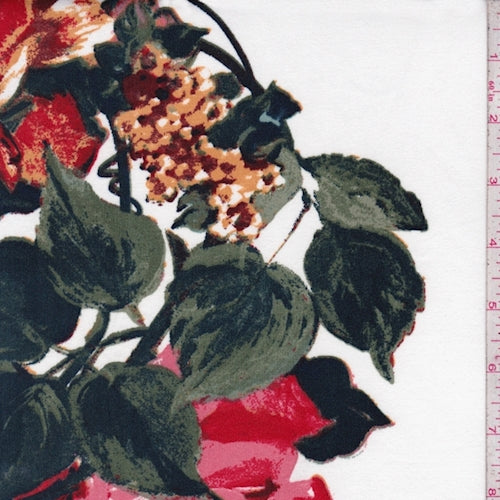 White Hydrangea/Floral Double Brushed Jersey Knit Fabric