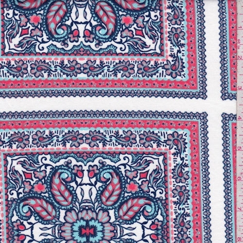 White/Salmon Tile Double Brushed Jersey Knit Fabric