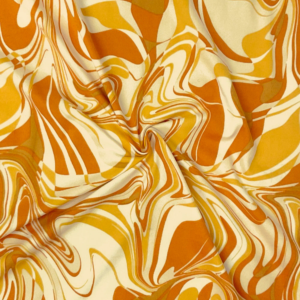 -Yellow-Orange Poly Spandex Stretch Abstract Print Double Brush Jersey Knit Fabric