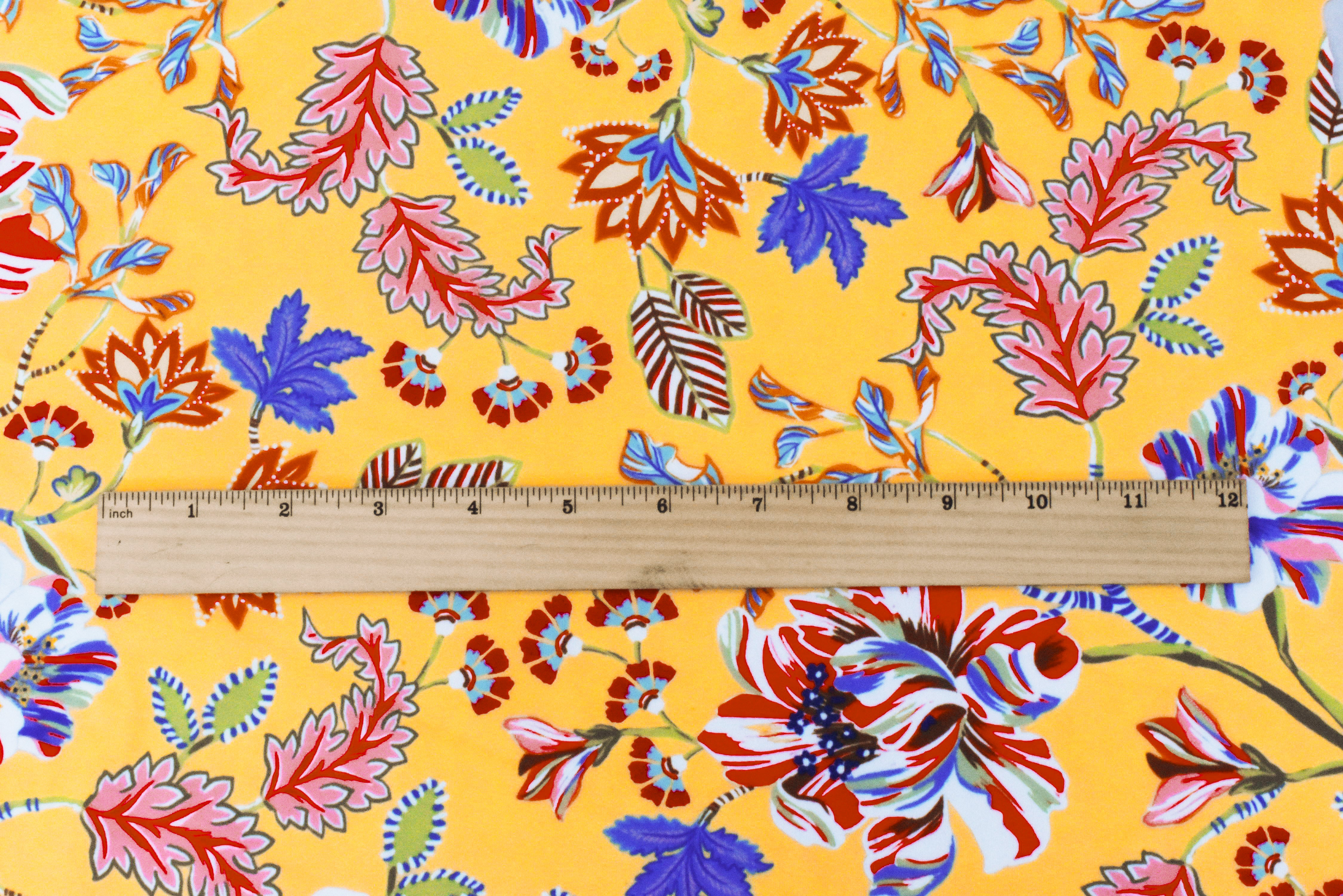 Yellow-Red-Multi Floral Printed Stretch Poly Tricot Knit Swimwear Fabric