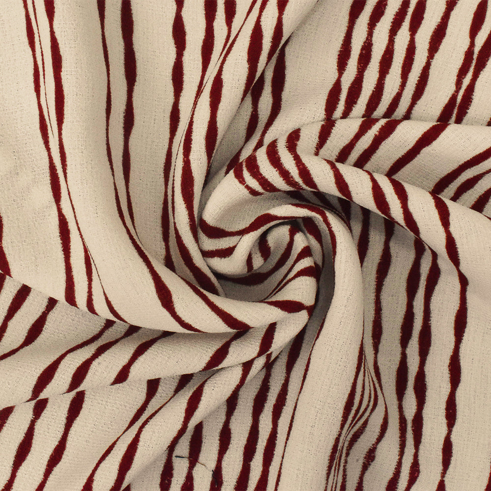 1 1/2 YD PC-Brown-Ivory Stripe Printed Poly texture Georgette Woven Fabric