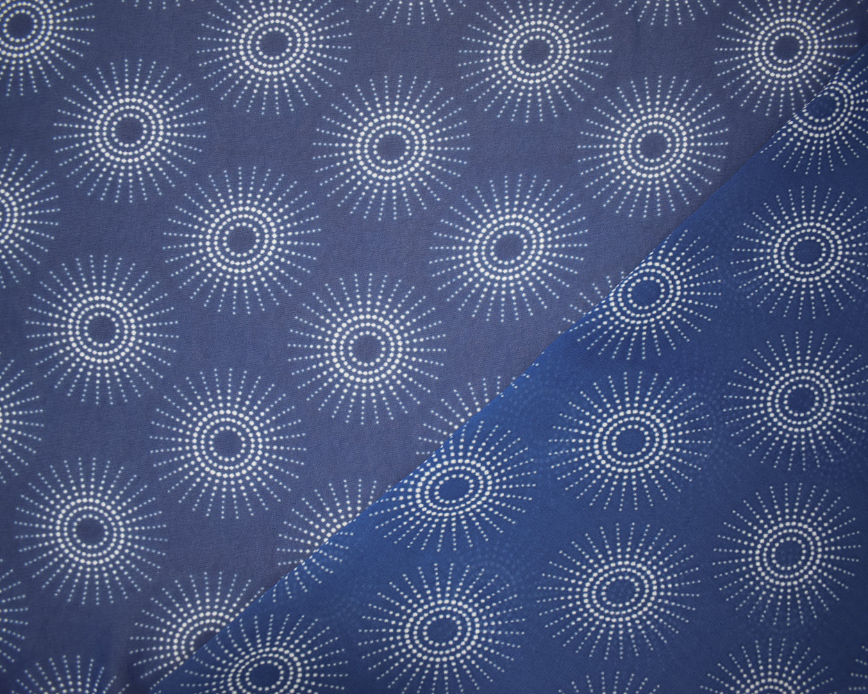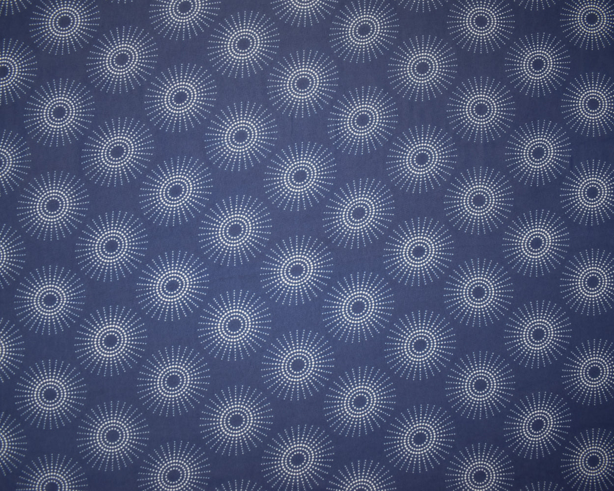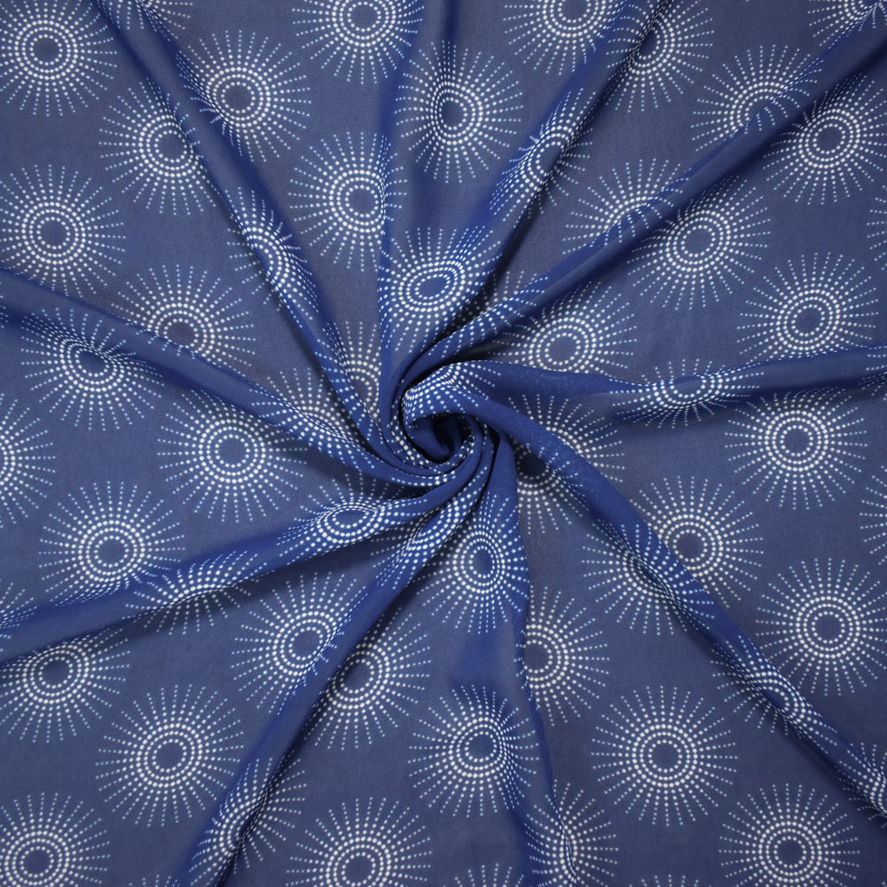 1 3/4 YD PC-Blue-White Poly Abstract Sun Burst Printed Chiffon Woven Fabric