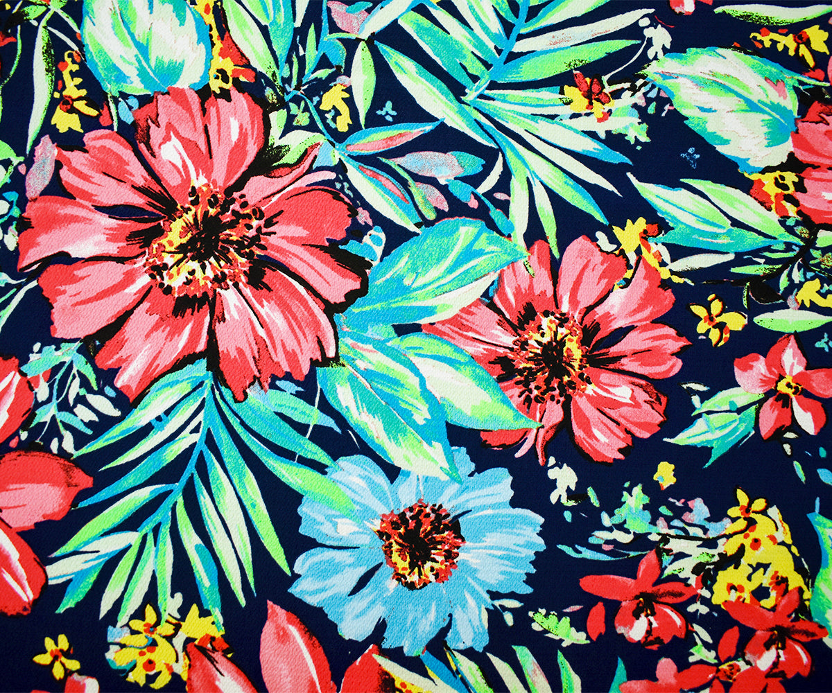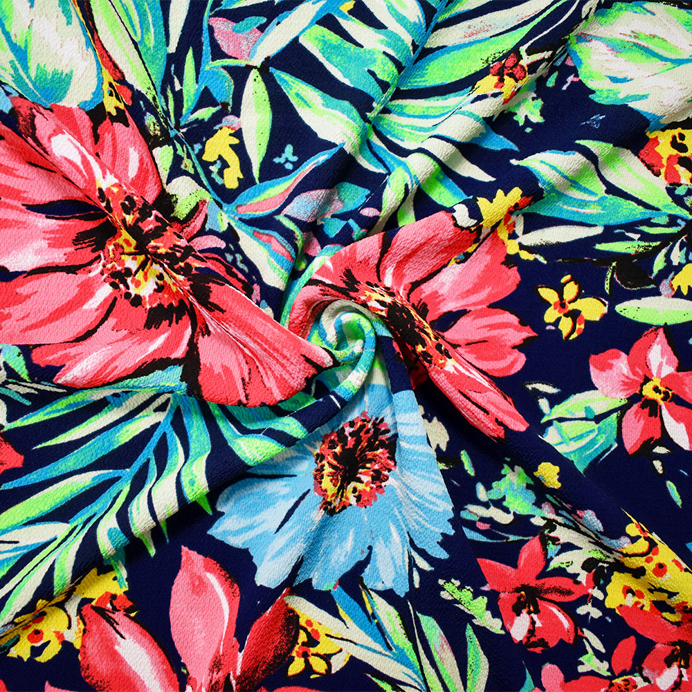 2 1/2 YD PC -100% polyester pebble crepe dobby woven fabric printed with florals