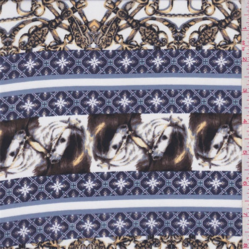 2 1/2 YD PC-White/Blue Multi Deco Stripe Crepe de Chine Fabric