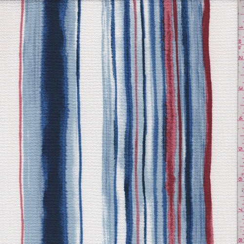 2 3/4 YD PC-White/Navy/Powder Stripe Crinkled Crepe Fabric