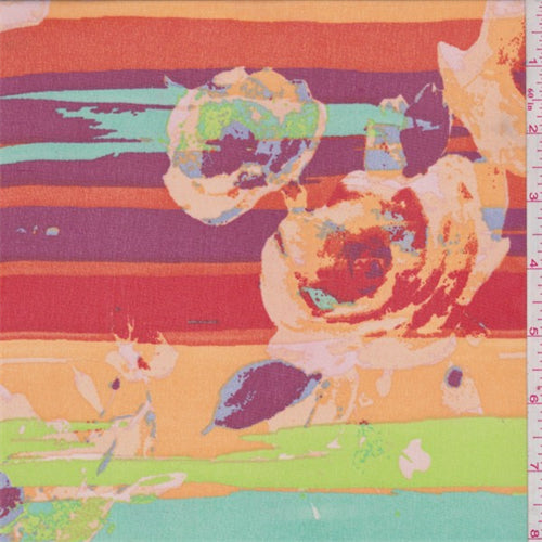 2 3/8 YD PC-Cranberry/Orange Floral Stripe Chiffon Fabric